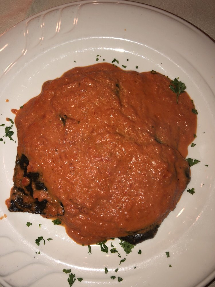 Top round veal with prosciutto, fresh mozzarella, served with sauteed spinach.